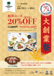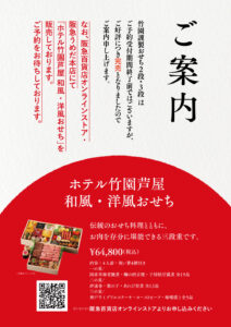 0797-32-9581(ホテル総合受付直通) banquet@takezono.co.jp インターネット上でのご予約は1週間前までとさせて頂きます。 | 予約専用フォーム |