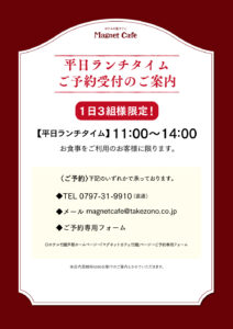 | 営業時間 | 7:00〜20:30(LO 20:00) [モーニングタイム]7:00〜11:00(LO 10:00) |