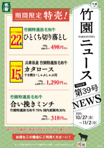 昭和21年、但馬牛専門の精肉店として、芦屋の地に創業して以来、「あしや竹園 芦屋本店」には長年大切にしてきた、五つのこだわりがあります。それは、信頼関係を持った「生産農家」。お肉の味を決める「血統」。きめ細かく口当たりのよい「肉質」。とろける甘みが広がる「脂質」。そして最後に、竹園独自の「食べごろ」。これら『仕入れ』の目利きに加え、脂の融点が低いお肉への素早いさばきや部位ごとに厚さを調整する伝統の竹園スライスなど、職人の『仕上げ』の技術によって美味しさを最大限に引き出した神戸牛・竹園特選但馬牛、そして竹園特選黒毛和牛をご提供し、「芦屋の台所 竹園」として芦屋の皆様に日々ご愛顧いただけることを目指しています。